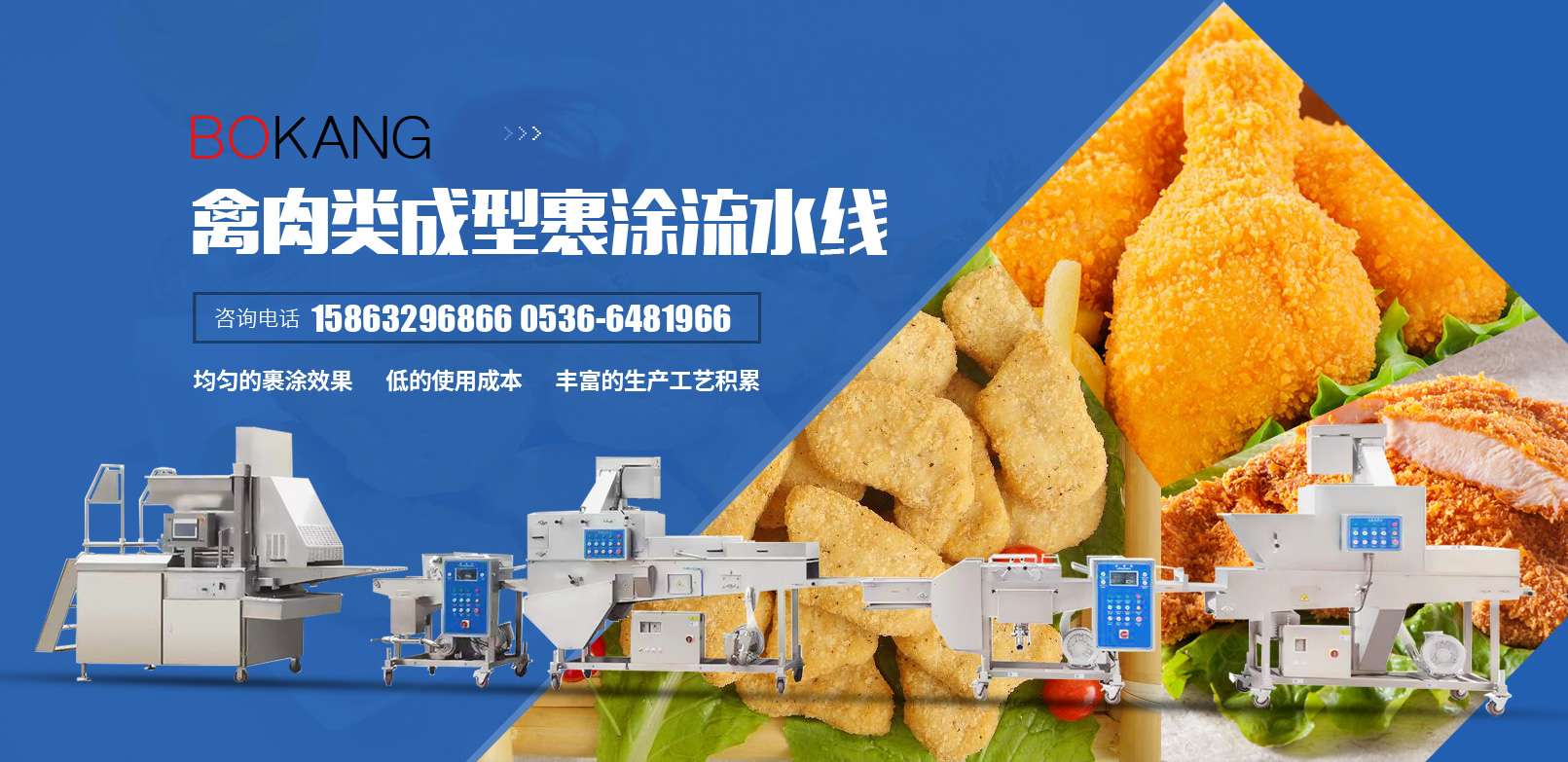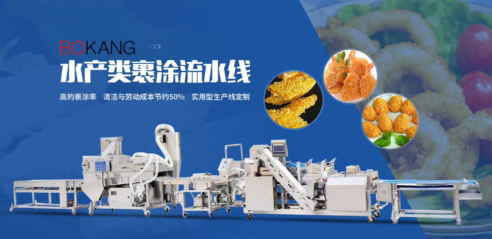 我們是一家生產(chǎn)預(yù)制調(diào)理類(lèi)成型裹涂設(shè)備的廠(chǎng)家。為您提供產(chǎn)品裹涂解決方案。經(jīng)過(guò)多年的努力與革新,既可給食品工業(yè)的用戶(hù)提供生產(chǎn)線(xiàn)中的單臺(tái)設(shè)備,也可以提供多種設(shè)備組成的完整生產(chǎn)線(xiàn)。