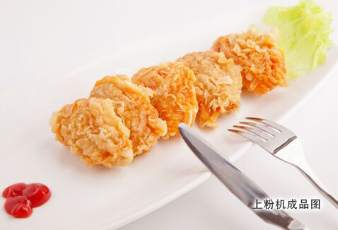 ·將產(chǎn)品埋入粉中裹附,裹粉充分,上粉率高;