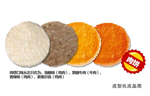 CXJ400 full-automatic forming machine can automatically complete the filling, forming and output of the meat. It can connect a full-automatic production line with pulping machine, breading machine, frying machine and quick-freezing machine to produce hamburger cake, chicken nuggets, fish steak and other products.